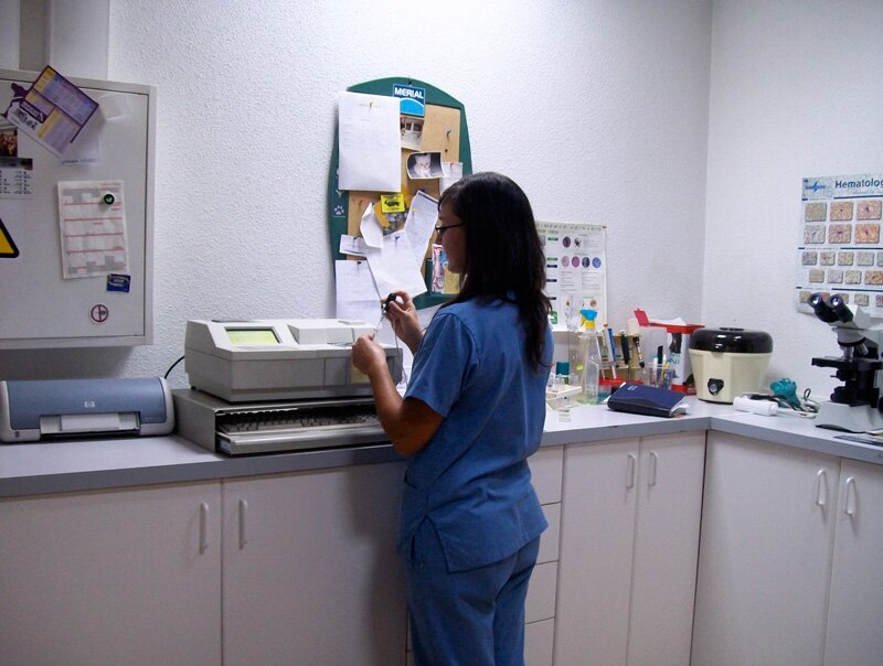 El laboratorio de nuestra clínica veterinaria de Alicante está equipado con analizadores de bioquímica sanguínea y hemograma, los cuales permiten obtener resultados analíticos a los pocos minutos de la extracción de sangre, orina...