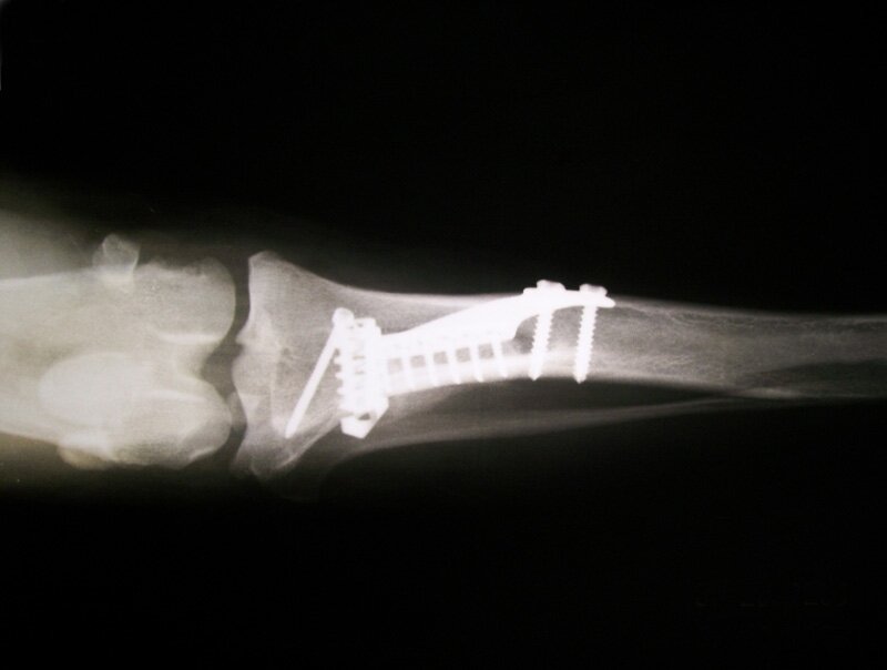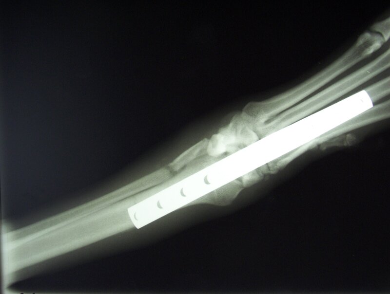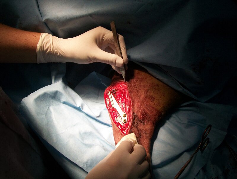 En la reparación de fracturas utiliza de forma habitual osteosíntesis mediante placas de compresión y tornillos, clavos cerrojados o técnicas tridimensionales de fijación externa.